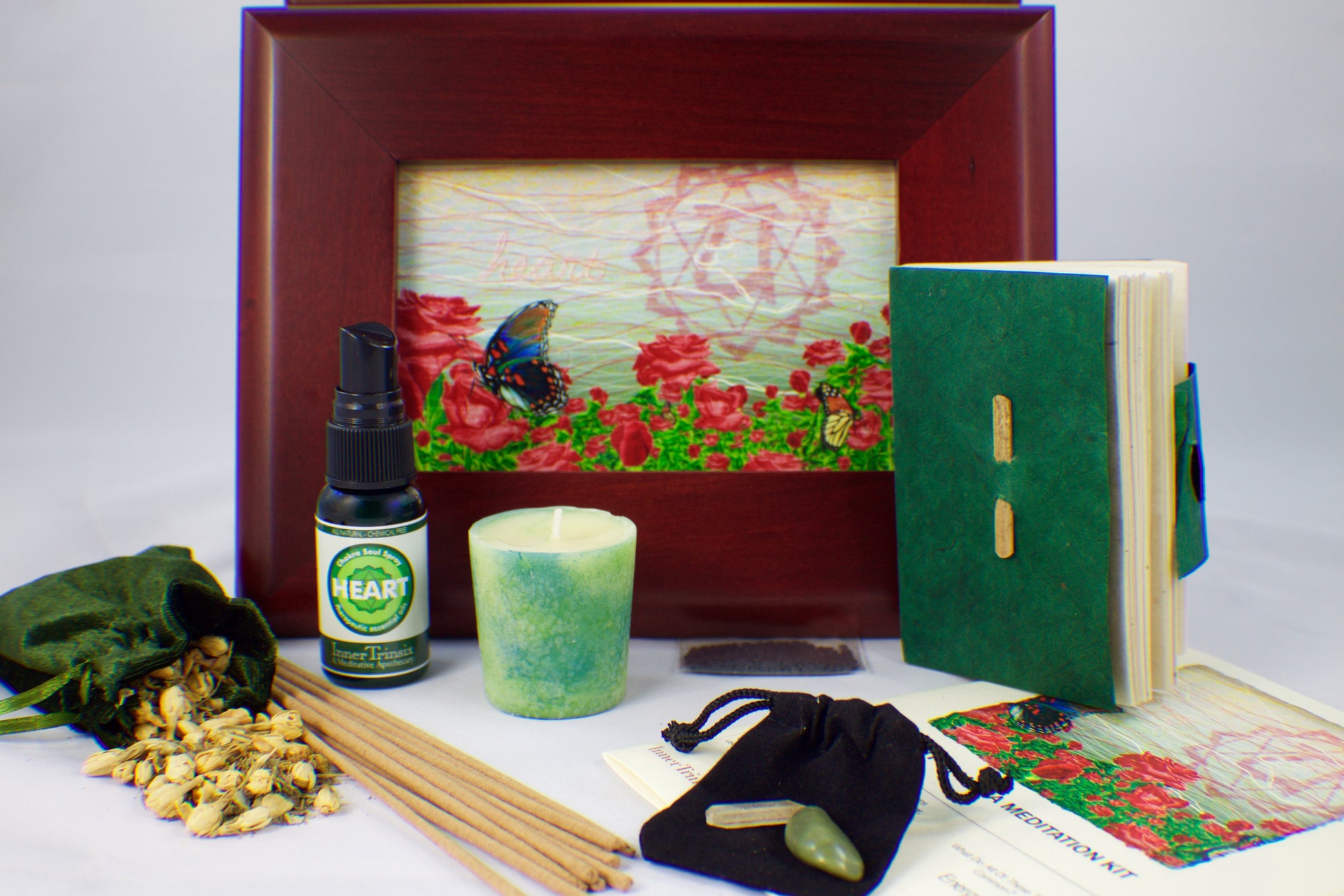 When navigating a spiritual path, it can be difficult to know which items and approaches are the right or most effective ones to use in manifesting your desires. Great news: we’ve done the research for you, and created collection of tools encased in a decorative cherry wooden box.