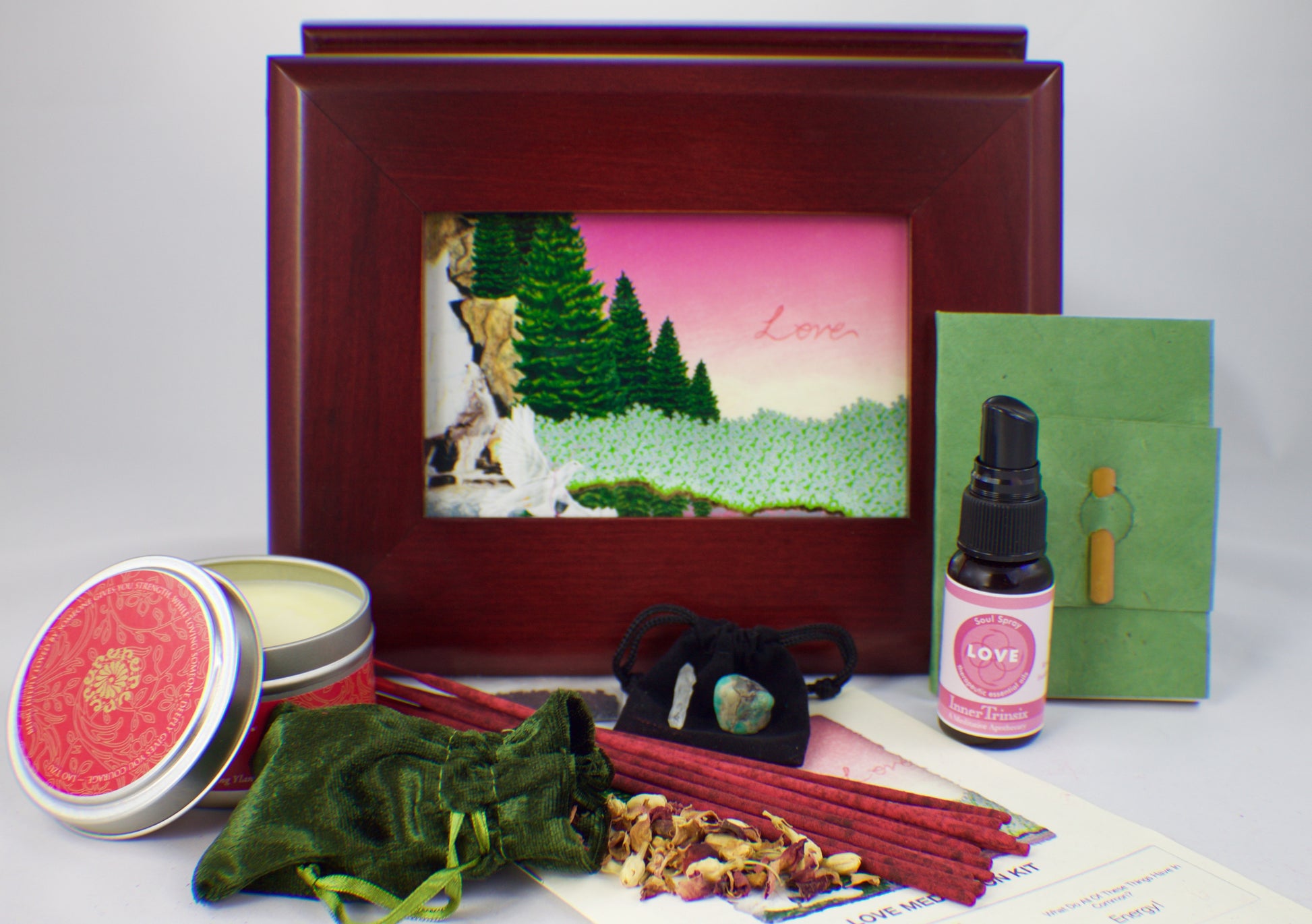 Sacred gifts from Mother Earth include crystals, gemstones, herbs, plant seeds and essential oils. Incense and a candle help to summon the sacred space for healing work. A journal and a key help to unlock the door to healing and expression. We’ve also created a detailed booklet walking you through select rituals that have been proven by eons of tradition for Love.