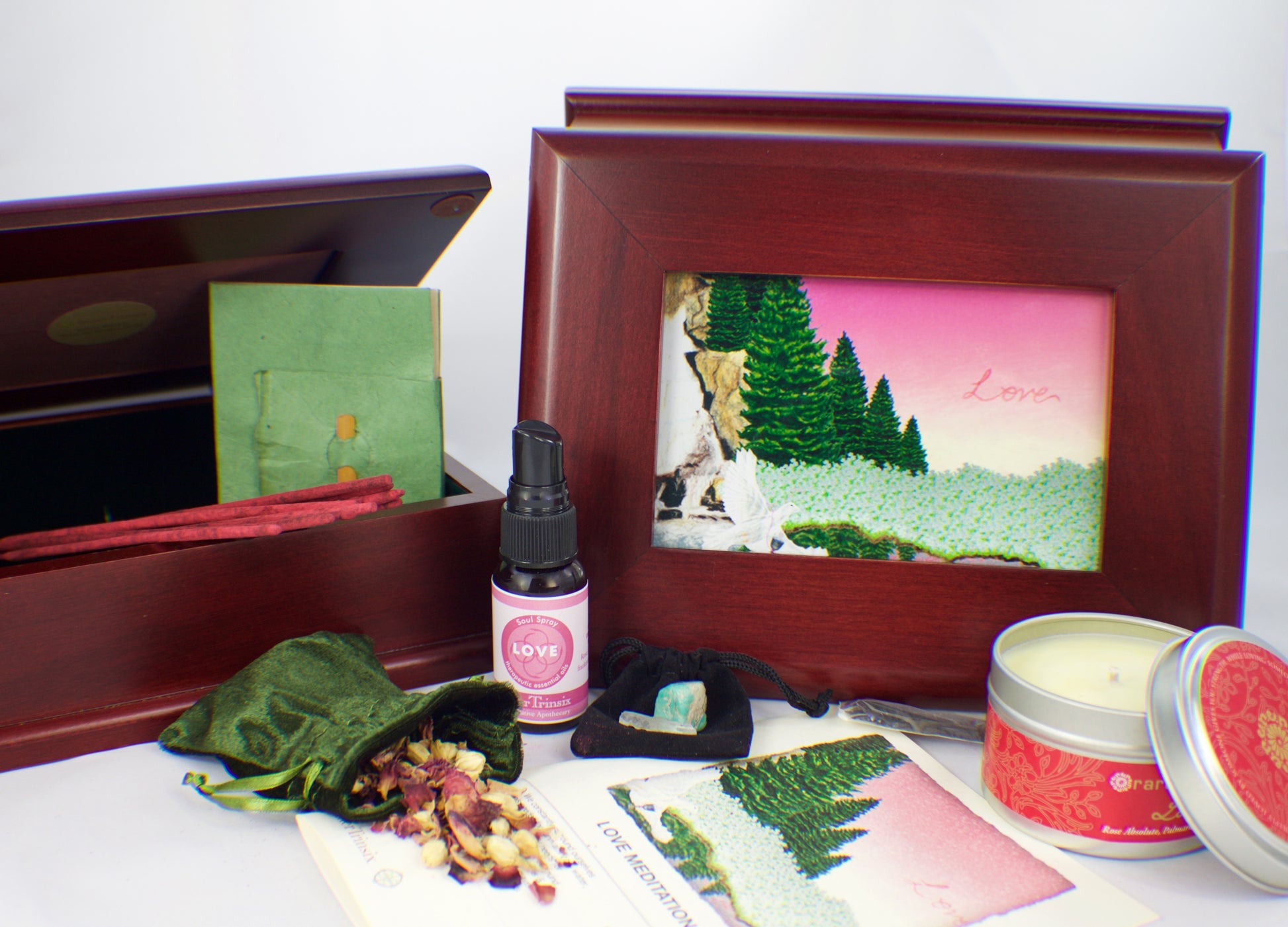 When navigating a spiritual path, it can be difficult to know which items and approaches are the right or most effective ones to use in manifesting your desires. Great news: we’ve done the research for you, and created collection of tools for Love encased in a decorative cherry wooden box.