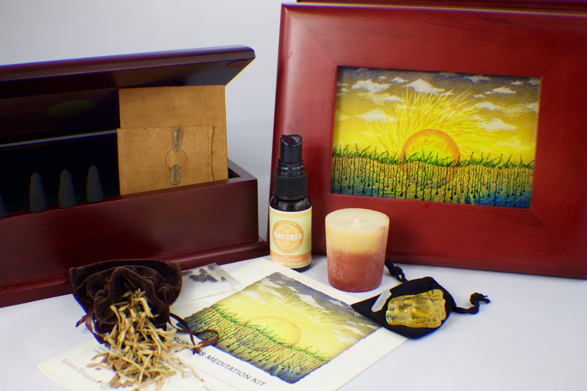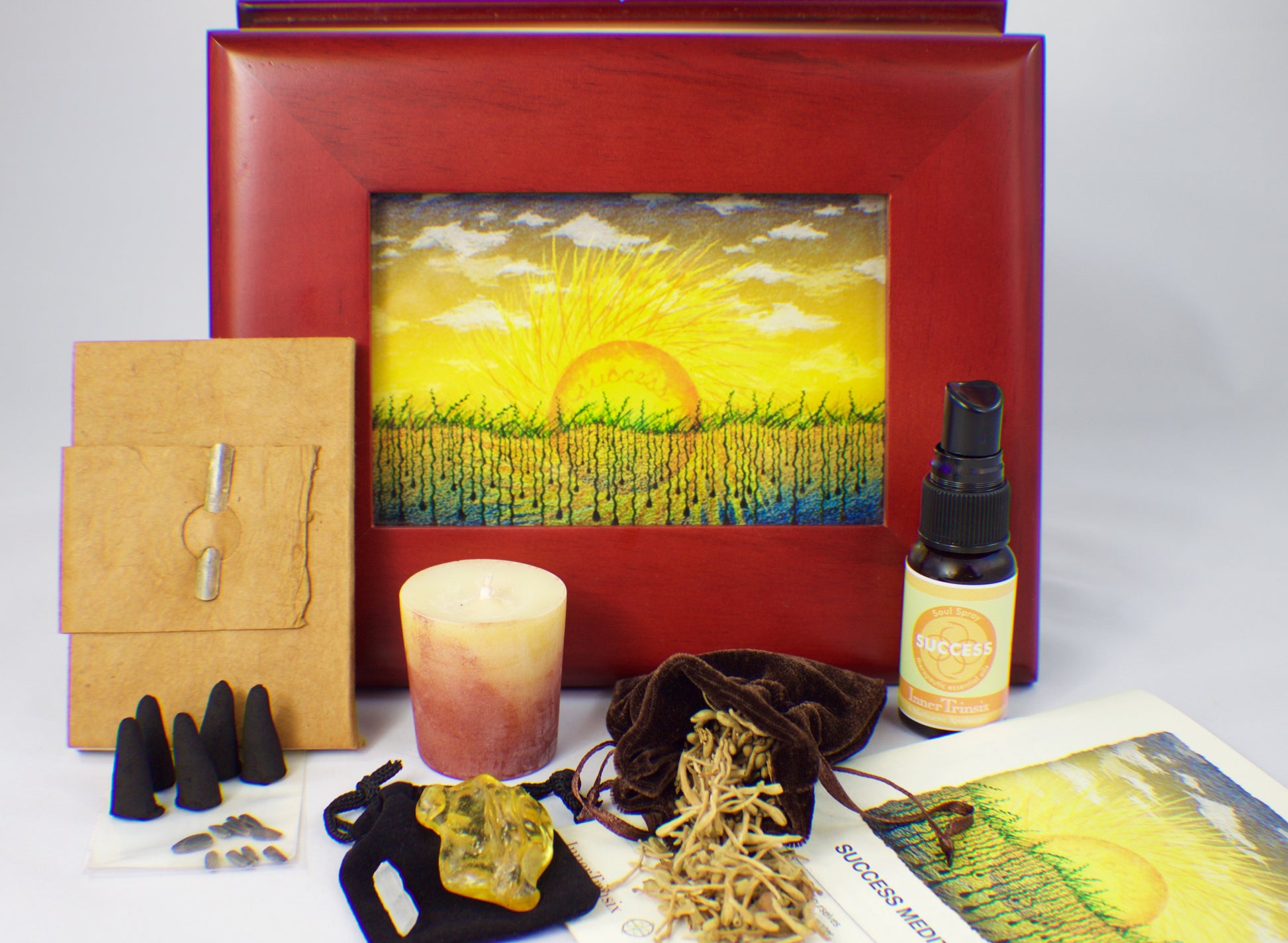 When navigating a spiritual path, it can be difficult to know which items and approaches are the right or most effective ones to use in manifesting your desires. Great news: we’ve done the research for you, and created collection of tools for Success encased in a decorative cherry wooden box.